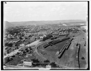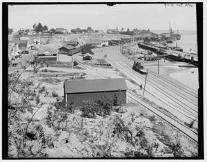 Loading lumber on steamer at lumberyards, Menominee, Mich.