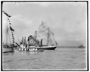 Mardi Gras, arrival of Rex on U.S.S. Galveston, New Orleans, La.