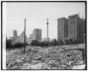 Foot of Market Street, showing earthquake upheaval, San Francisco, Cal.