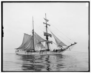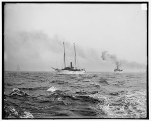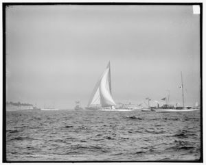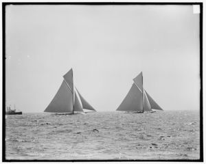 Reliance and Shamrock III maneuvering for the start, Aug. 25, 1903