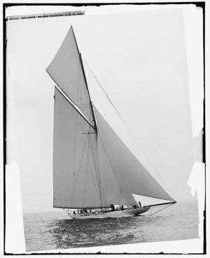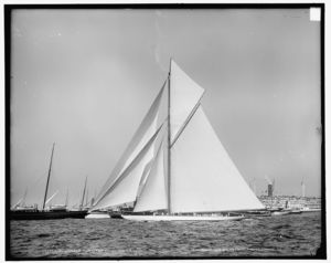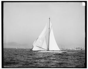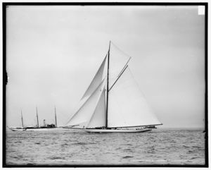 Reliance and Shamrock III coming for the line, Aug. 27, 1903