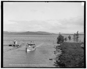 Str. Belle of Isles leaving lake at Endicott Rock, Lake Winnipesaukee, N.H.