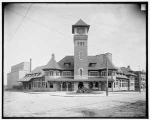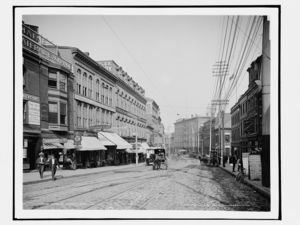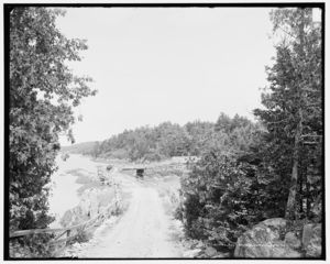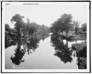 Looking up from Riverton Park, Presumpscot River, Portland, Me.