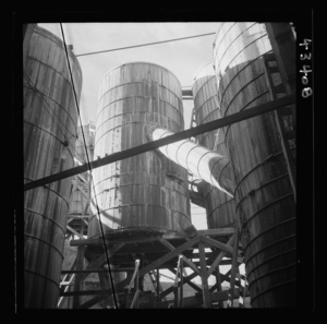 New Idria, California. Tanks at the mercury extraction plant of the Quicksilver Mining Company where mercury is obtained from cinnabar, an ore mined at a number of workings near the plant