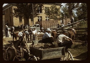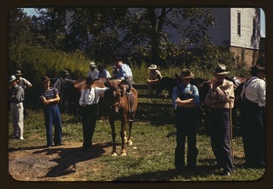 Mountaineers and farmers trading mules and horses on "Jockey St.," near the Court House, Campton, Wolfe County, Ky.