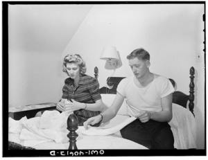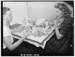 Washington, D.C. Hugh Massman, a second class petty officer who is studying in Washington, and his wife eating dinner. Joey, their son, sleeps on a pad on the table