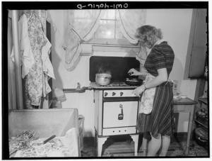 Washington, D.C. Lynn Massman, wife of a second class petty officer who is studying in Washington, cooking dinner