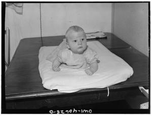 Washington, D.C. Joey, eight weeks old son of Hugh Massman, a student at the Naval Air Station