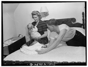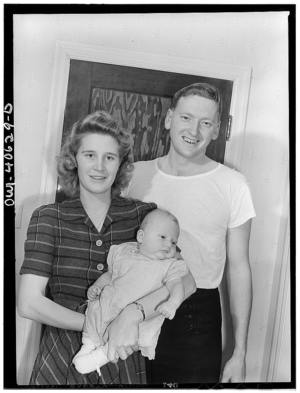 Washington, D.C. Hugh Massman, a student at the Naval Air Station, with his wife, Lynn and eight weeks old son, Joey