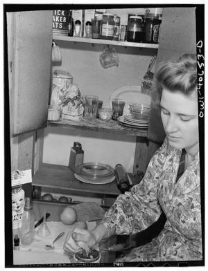 Washington, D.C. Lynn Massman, wife of a second class petty officer who is studying in Washington, preparing dinner