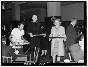 Washington, D.C. Hugh and Lynn Massman eating lunch at a cafeteria after a day of sightseeing. Their eight-weeks-old son is being taken care of at the United Nations service center