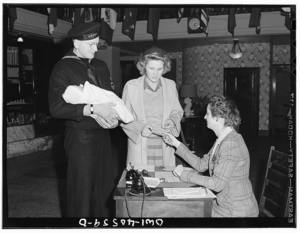 Washington, D.C. Hugh and Lynn Massman at the United Nations service center. Just arrived in Washington, they are told they can leave their baby in the nursery while they see the town and find a place to live