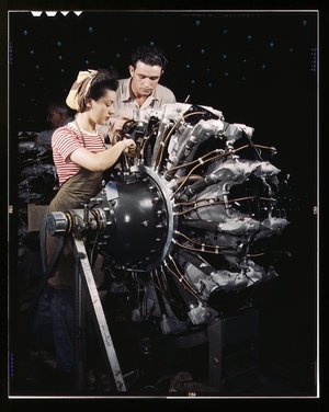 Women are trained as engine mechanics in thorough Douglas training methods, Douglas Aircraft Company, Long Beach, Calif.