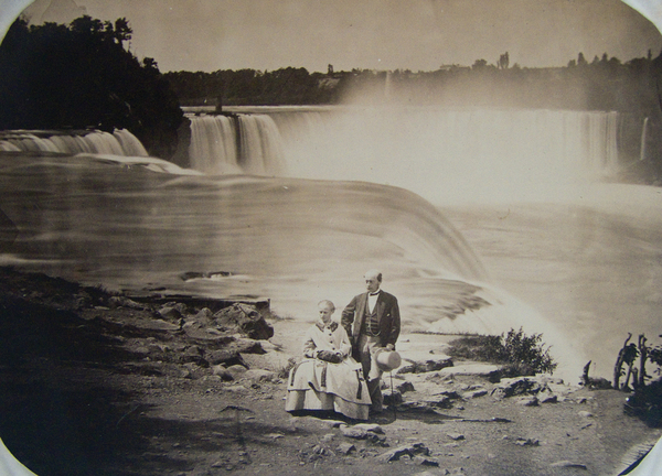 Young man and girl seated on the Canadian side of Niagara Falls, circa 1858.