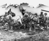 101st Airborne troops posing with a captured Nazi vehicle air identification sign two days after landing at Normandy.