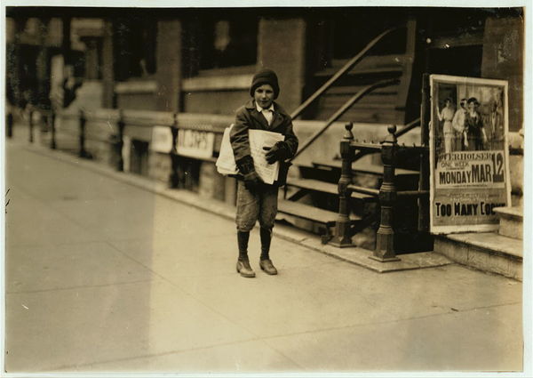 10-year-old truant newsie, selling during school hours Said: "I been sich i.e., sick with pneumonia". Location: Oklahoma City, Oklahoma / Lewis W. Hine.