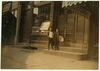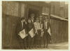11:00 A. M . Monday, May 9th, 1910. Newsies at Skeeter's Branch, Jefferson near Franklin. They were all smoking. Location: St. Louis, Missouri.