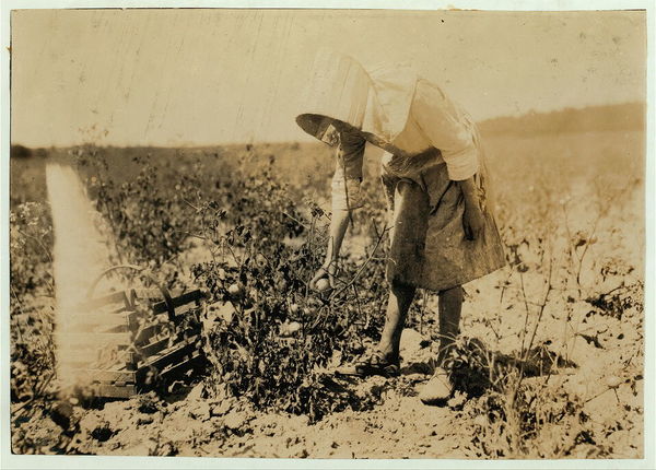 11-year old girl picking tomatoes on farm of W.T. Hill. Location: Cabool, Missouri / Lewis W. Hine.