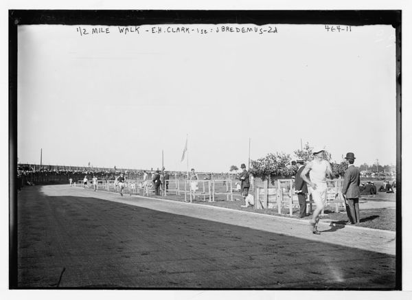 1/2 mile walk, E.H. Clark - 1st; J. Bredemus -2nd, Y.M.C.A., Brooklyn