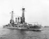 12"/40 guns of the ship's forward gun turret, photographed circa 1907-1908. Note Sailors strolling on deck; bell mounted on the pilothouse face; and 3-pounder guns mounted on the superstructure.