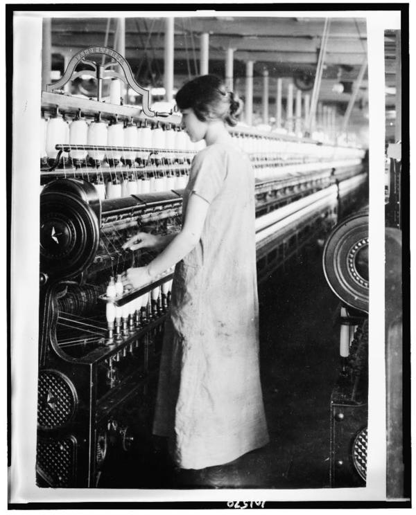 14-year old spinner in Berkshire Cotton Mills. Location: Adams, Massachusetts / Lewis W. Hine.