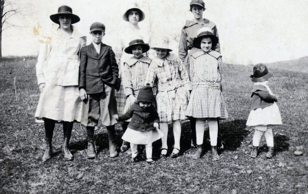 1917 or 1918 with Gibbs and Moffett kids. Not certain about Lena on the left. May be Elizabeth Gibbs Deming on back right.