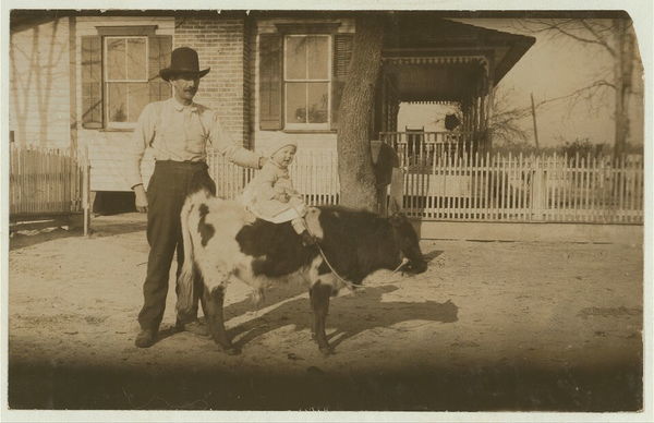 2 "yearlings" belonging to a South Georgia farmer. The former usually gets more attention than the child. John Paulk family. See report of Lewis W. Hine on Georgia, March 1915. Location: Kirkland, Georgia.