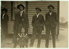 3 doffer boys, Dickson Mill, Laurinburg, N.C. Charley Gregory (boy with white collar). Been in mill 8 years. Has worked nights four years. David and Dick work daytime. Witness, S.R. Hine. Location: Laurinburg, North Carolina.