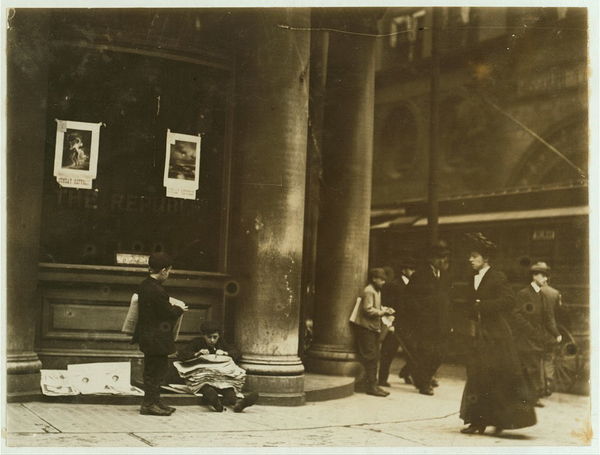 8 year old boy selling at 7th and Olive. Saturday P.M. May 7th, 1910. Witness E.N. Clopper,. Location: St. Louis, Missouri.