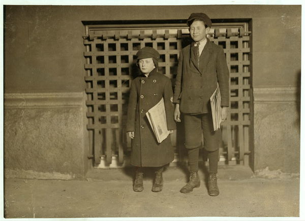 Sunday noon. Some of the newsboys returning Sunday papers. Many of them had been out since 5 and 6 A.M. Hartford, Conn. Location: Hartford, Connecticut.