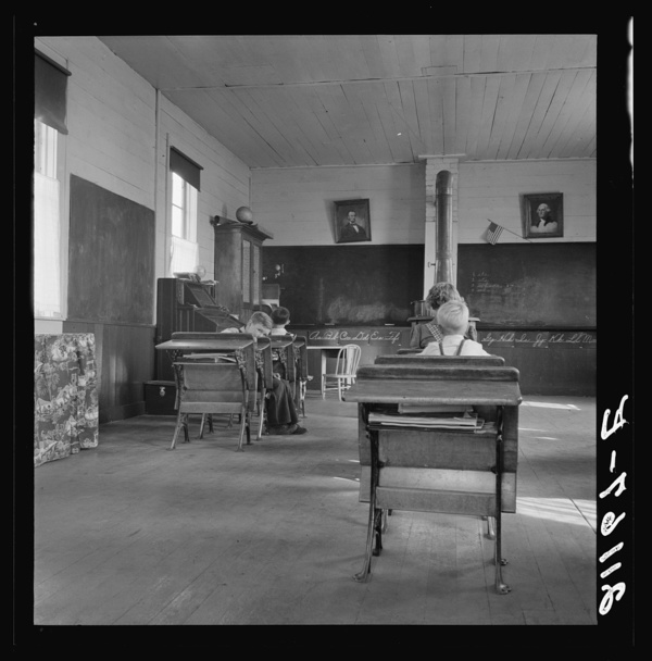 8:45 a.m. Interior of the eastern Oregon one-room county school. Seven pupils enrolled. Between Pleasant Valley and Durkee, Baker County, Oregon