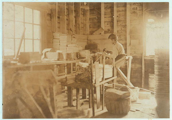 A Basket Factory, Evansville, Indiana. Boy Making Melon Baskets. Location: Evansville, Indiana.