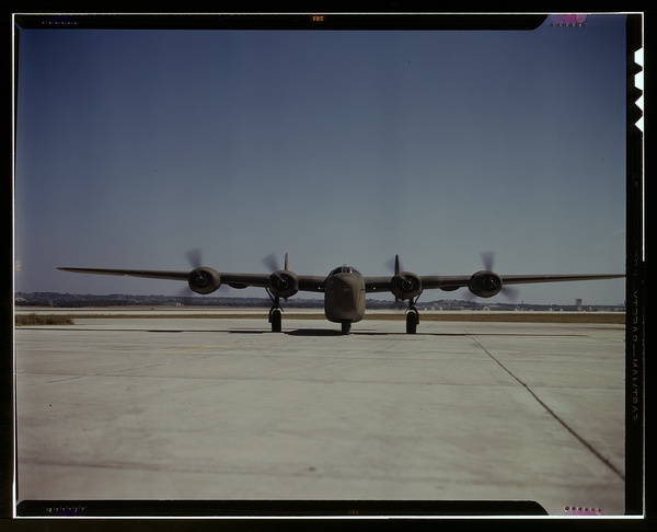 A C-87 transport plane, just off the assembly line, at the Consolidated Aircraft Corporation field, Fort Worth, Texas