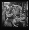 People boarding a Greyhound bus at a small town between Chicago, Illinois and Cincinnati, Ohio