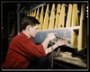 Riveter at work at the Douglas Aircraft Corporation plant in Long Beach, Calif.