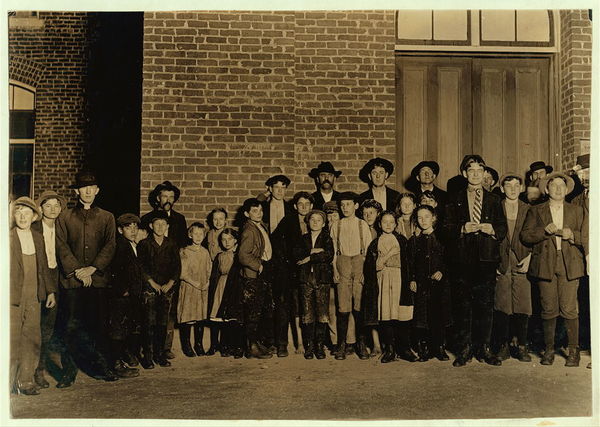 A few of the employees in the Clinton Mills, Clinton, S.C., going home from work. Many others as small were in evidence. Superintendent wouldn't allow me to take photos inside. Photo by flashlight. Location: Clinton, South Carolina.