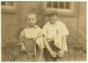 Two of the youngest newsboys in Hartford, Connecticut. They are cousins eight and ten years old. August 25, 1924. Location: Hartford, Connecticut.