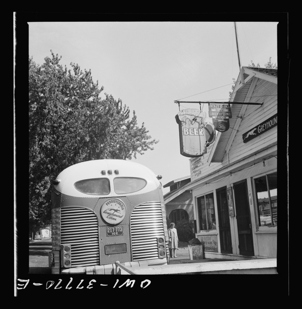 Indianapolis, Indiana. A bus being boarded by passengers at the Greyhound bus terminal
