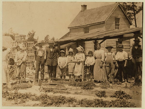 A group of berry pickers on Newton's Farm, Cannon, Del. 2 Children are 9 years of age, 1 Child, 15, and 1--16. These children have all been picking for the past 2 years. Location: Cannon, Delaware.