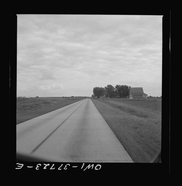 A highway which was formerly crowded with traffic in Indiana as seen from a Greyhound bus