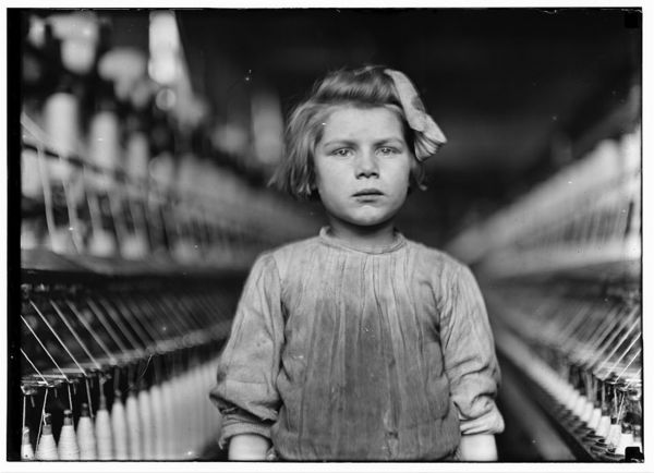 A little spinner in Globe Cotton Mill. Augusta, Ga. The overseer admitted she was regularly employed. Location: Augusta, Georgia.