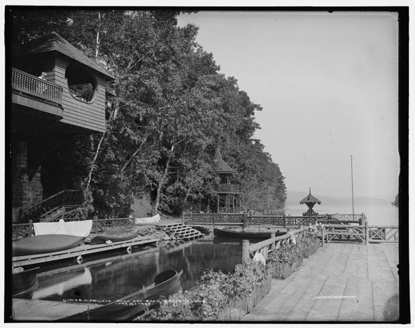 A Private dock and basin, Green Island, Lake George, N.Y.