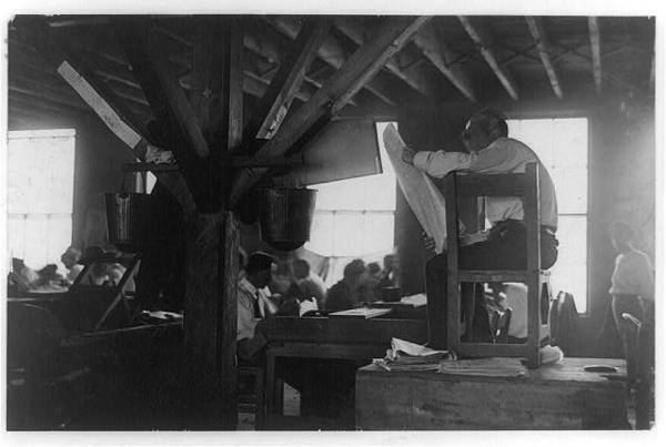 A "Reader" in cigar factory, Tampa, Fla. He reads books and newspapers at top of his voice all day long. This is all the education many of these workers receive. He is paid by them and they select what he shall read. Location: Tampa, Florida.