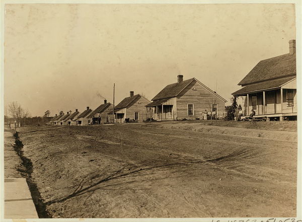 A row of houses of the cotton mill people. Lydia Mills, Clinton, S.C. Witness, Sara R. Hine. Dec. 2, 1908. L.W.H. Location: Clinton, South Carolina.