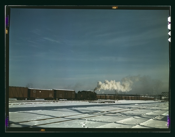 A train pulling out of the freight house at C & NW RR's Proviso(?) yard, Chicago, Ill.