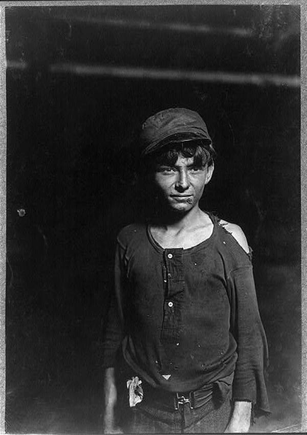 A typical Glass Works Boy, Indiana, Night Shift, Said he was 16 years old. 1 A.M. Location: Indiana.