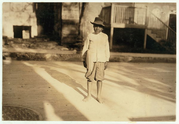 A typical San Antonio newsboy. Nine years old. Youngsters like this abound, here and in many other Texas cities. Some sell early in morning and late at night. Location: San Antonio, Texas.