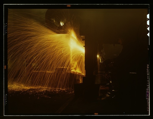 A welder who works in the round-house at the Chicago and Northwestern Railroad's Proviso yard