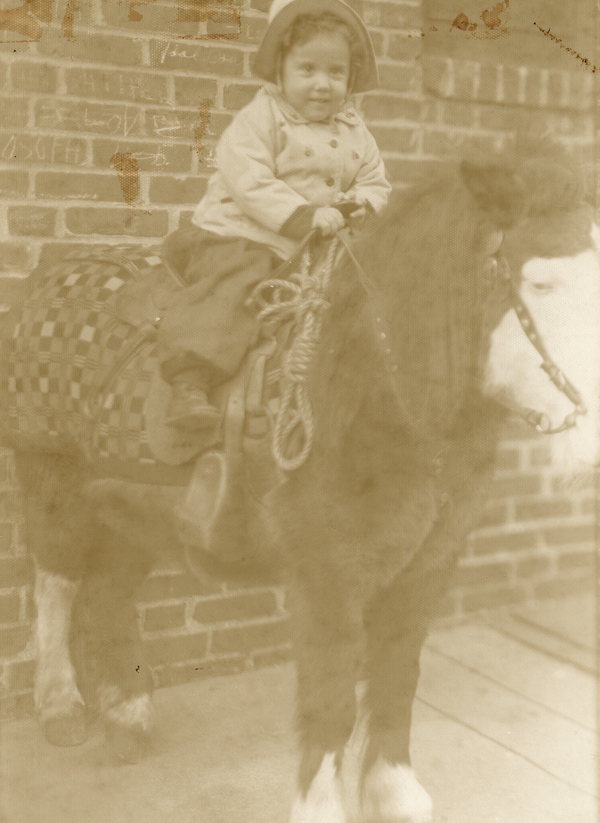 A young Dona Progebin on a pony in Brooklyn in 1944