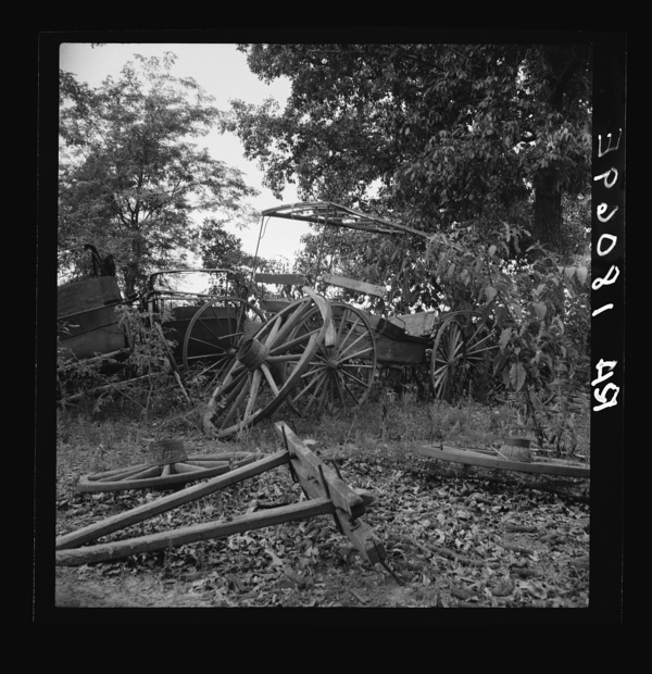 Abandoned coaches and wagons behind the old blacksmith shop on the Wray Plantation. Greene County, Georgia